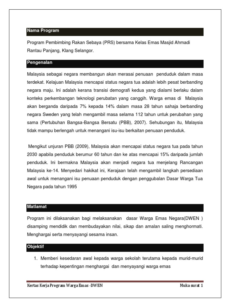 Kertas Kerja Khidmat Komuniti Warga Emas Pdf
